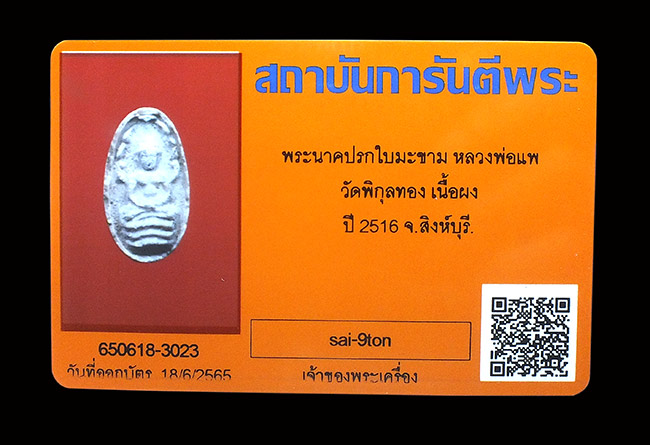 พระนาคปรก ใบมะขาม เนื้อผง หลวงพ่อแพ ปี.16........................350