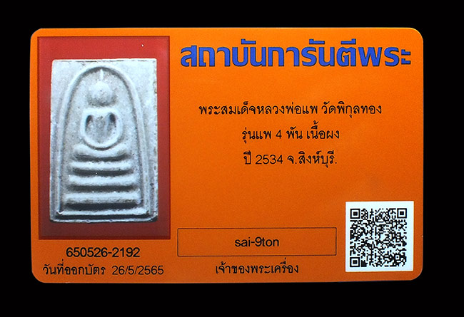 สมเด็จ แพ.4 พัน หลวงพ่อแพ บล๊อก 3 จุด ปี.34 ........................750