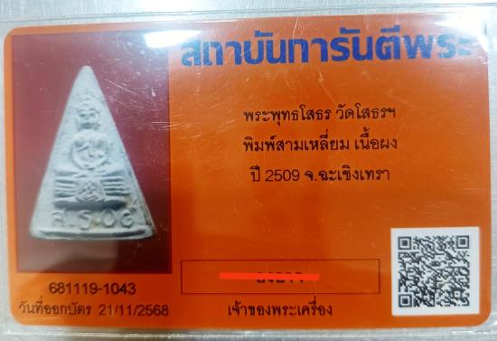 ชื่อพระเครื่อง *** หายาก!! ลพ.โสธร เนื้อผง พิมพ์สามเหลี่ยม ปี 2509 + บัตรรับรอง G ครับ ***