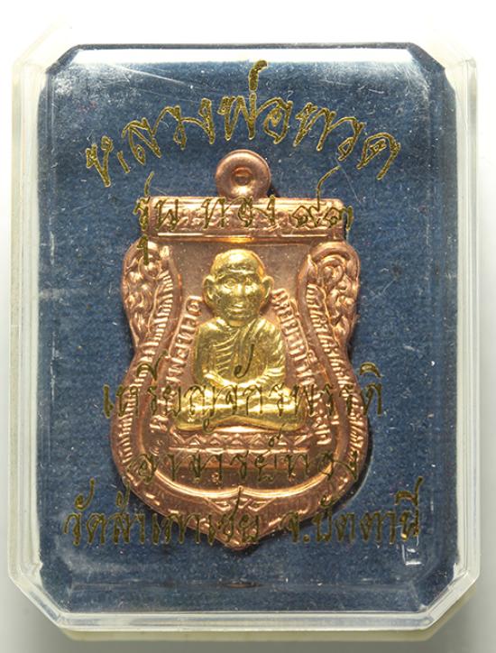 เหรียญเสมาจักรพรรดิหลวงพ่อทวด พิมพ์หน้าหัวโต หลังเลื่อน หรือ ยิ่งโตก็ยิ่งเลื่อนอีก หลวงพ่อทอง เนื้อ ทองแดงหน้ากากทองทิพย์ มีรันนิ่งเลข รุ่นทอง 93 หลวงพ่อทอง วัดสำเภาเชย จ.ปัตตานี ปี 2552 |