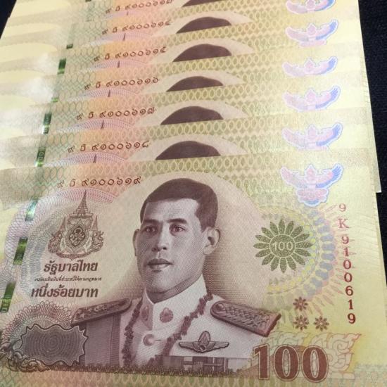 แบงค์ 100 ที่ระลีก บรมราชาภิเษก รัชกาลที่ 10 เลขเรียง รวม 10 ฉบับ