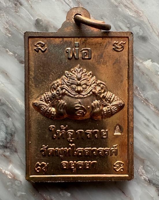 เหรียญทวิภพ สองแผ่นดิน พ่อให้ลูกรวย ปี 48 องค์พ่อจตุคามรามเทพ พ่อโชติ วัดพุทไธสวรรค์ จ.อยุธยา เนื้อทองแดง ตอกโค้ท เจดีย์ ด้านหลังเหรียญ แบ่งปันให้นำไปบูชารับปีใหม่กันครับ