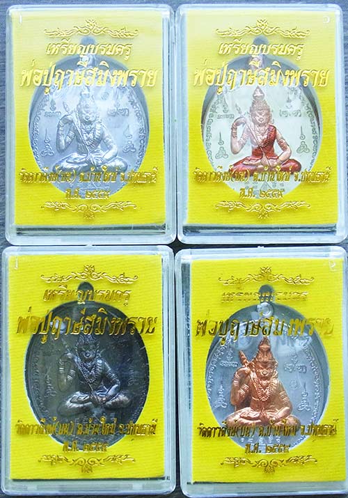 เหรียญบรมครู พ่อปู่ฤาษีสมิงพราย พระอาจารย์สุรศักดิ์ ถาวโร (พระอาจารย์ติ๊ก) วัดดาวดึงษ์ (บน) ปทุมธานี ปี 2559 (ลูกศิษย์ฆราวาส จอมขมังเวท พ่อคำมา หงษ์ทอง) ชุดกรรมการ 1 ชุด (4 เหรียญ) |