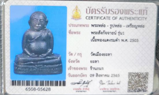 พระสังกัจจายน์ วัดเมืองยะลา ปี 2505 พร้อมบัตรรับเพื่อนบ้าน