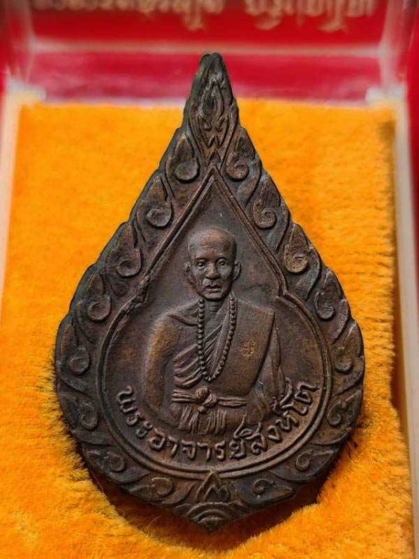 เหรียญพัดยศ(กรรมการ) พระอาจารย์สิงห์โต วัดน้ำแพร่ อ.ดอยสะเก็ด จ.เชียงใหม่ ปี 2519 กล่องเดิม เป็นเหรียญประกบหน้า-หลัง มีจารด้านหลังทั้งแผ่นหน้า และแผ่นหลัง พบเจอน้อย