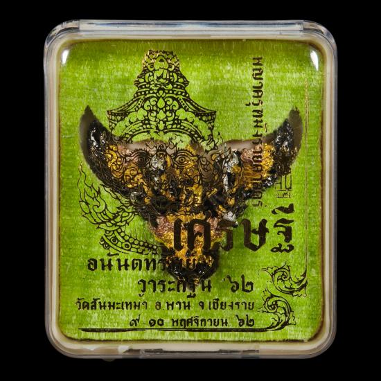 พญาครุฑมังรายศาสตร์ " เศรษฐีอนันตทรัพย์ " ครูบาวิรุต ญาณสํวโร วัดสันมะเหม้า อ.พาน จ.เชียงราย พิมพ์เล็ก เนื้อมหาชนวน 3 กษัตริย์ หมายเลข ๕๖๐ พร้อมกล่องเดิม
