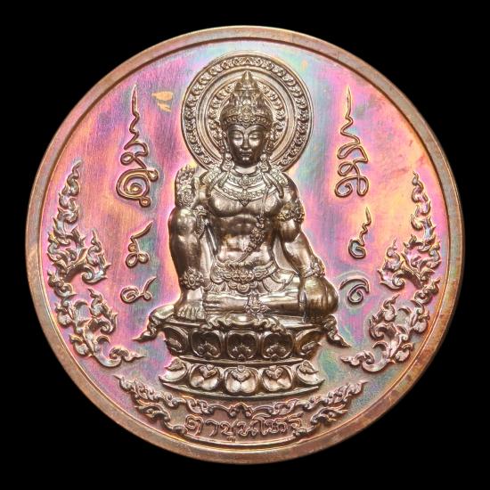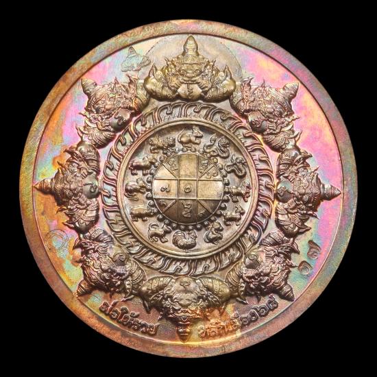 เหรียญบรมครูตาขุนโหร หลักเมือง ๖๘ รุ่น "พ่อให้รวย" นครศรีธรรมราช จัดสร้างโดย หมึก ท่าพระจันทร์ เนื้อทองแดงผิวรุ้ง สอดไส้ชนวน หมายเลข ๓๗ (เลขสองหลัก) พร้อมกล่องเดิม ปลุกเสก ๔ วาระ พิธีใหญ่แห่งปี เกจิดังทั่วประเทศร่วมปลุกเสก