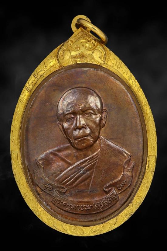 เหรียญหลวงปู่ทิม วัดละหารไร่ พิมพ์ห่วงเชื่อม บล็อค ภ ขีด เนื้อทองแดง เลี่ยมทอง