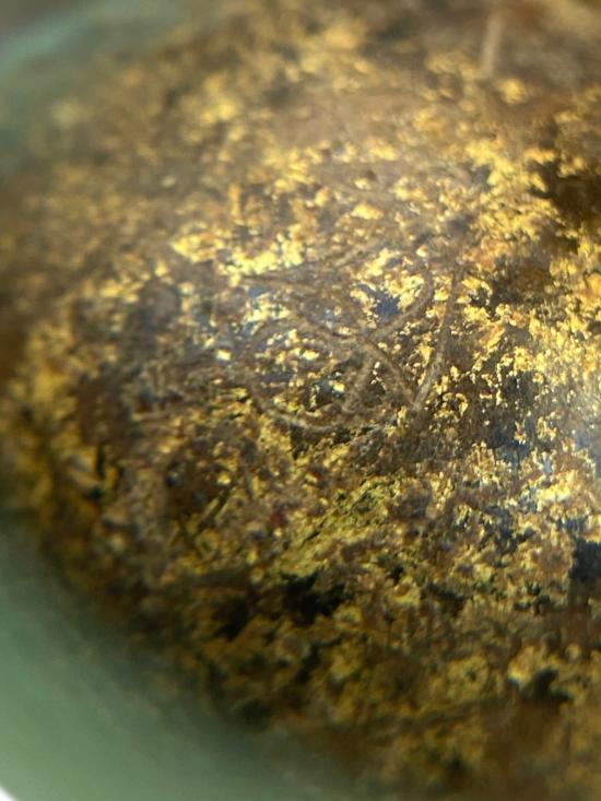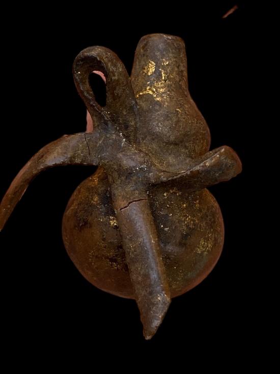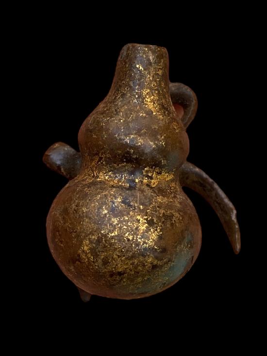เครื่องรางน้ำเต้าปิดทองเก่า ไม่ทราบที่ ลักษณะน้ำเต้าโบราณ มีร่องรอยปิดทองเก่าหลงเหลือให้เห็น ผิวเก่าจัด มีคราบอายุชัดเจน เป็นเครื่องรางสายโบราณที่นิยมบูชากันมา เหมาะสำหรับสะสมหรือบูชาติดตัว ตามสภาพจริงทุกประการ