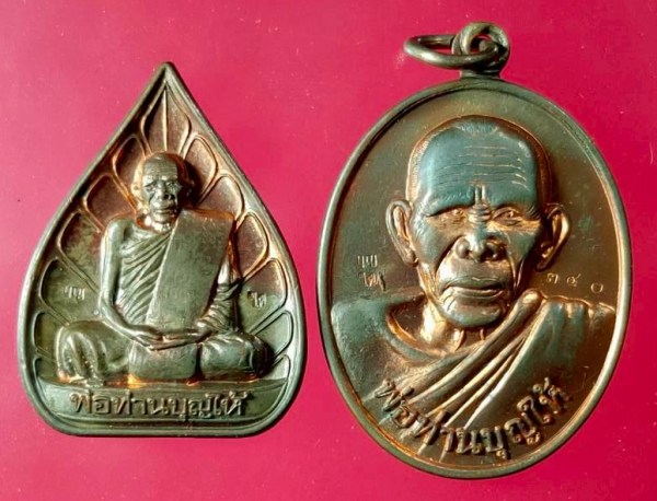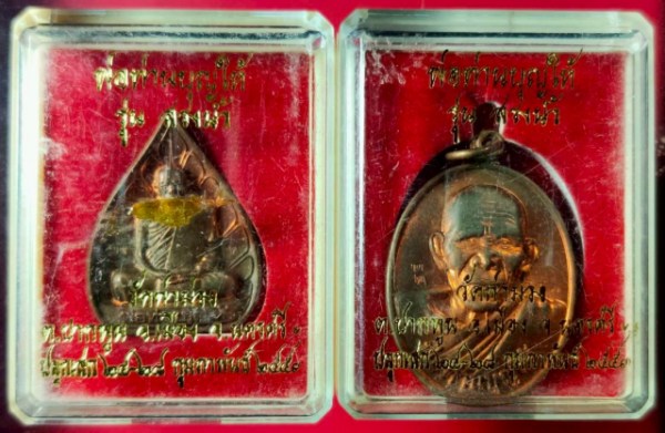 เนื้อทองแดง ปลุกเสก 24-28 กุมภาพันธ์ 2553 2 เหรียญ พิมพ์รูปไข่+พิมพ์ใบโพธิ์