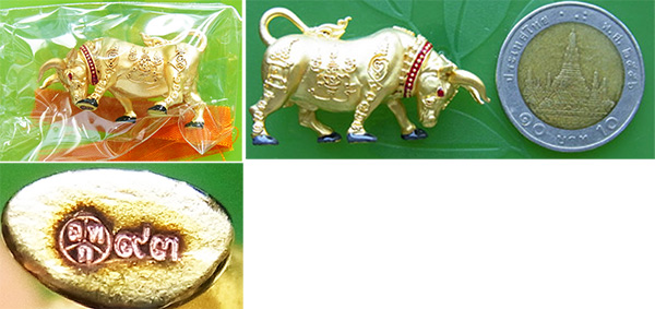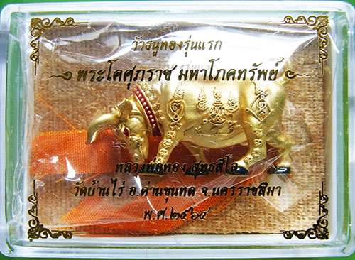 พระโคศุภราช มหาโภคทรัพย์ วัวธนู รุ่นแรก หลวงพ่อทอง วัดบ้านไร่ ปี 2564 เนื้อกะไหล่ทอง พร้อมจีวรหลวงพ่อ