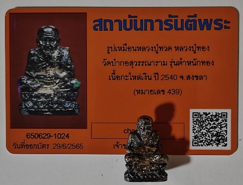 ชื่อพระเครื่อง ยกชุด 2 องค์ หลวงปู่ทวด รุ่นตำหนักทอง หลวงปู่ทอง วัดป่ากอสุวรรณาราม รุ่นตำหนักทอง เนื้อกะไหล่เงิน หมายเลข 439 และเนื้อผง (ฝังตะกรุดเงินหมายเลข 0474) จ.สงขลา ปี 2540