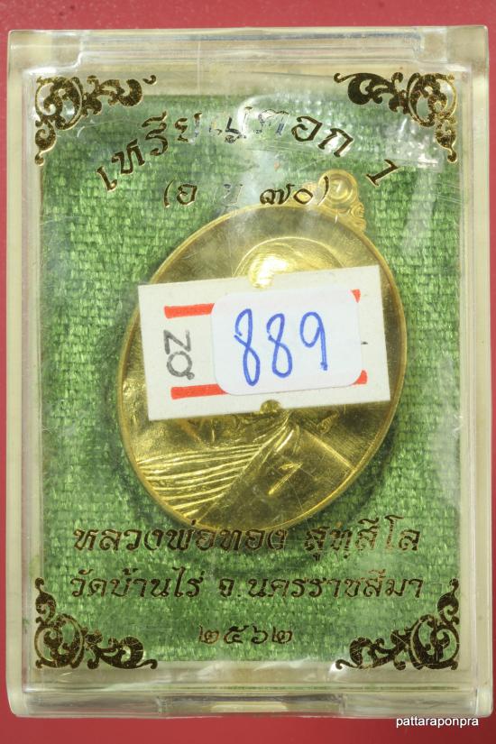 เหรียญหลวงพ่อทอง รุ่นตอก1 ปี 2562 เนื้อทองฝาบาตร หมายเลข 889 |