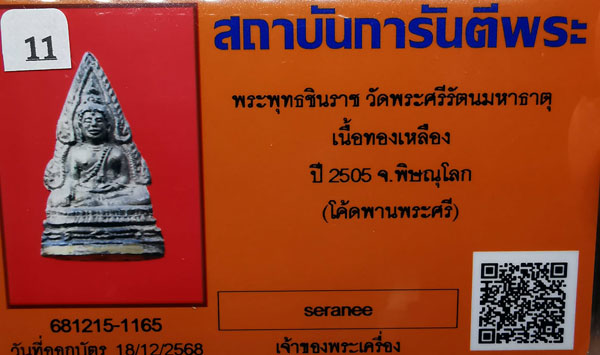 พระพุทธชินราช วัดพระศรีรัตนฯ เนื้อทองเหลือง(โค๊ตก้นพานพระศรี) ปี2505 จ.พิษณุโลก + บัตร G-pra สภาพเดิมค่ะ |