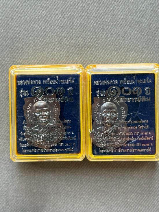 เดียวไวไว เหรียญเลื่อน หลวงพ่อทวด 101 ปี อาจารย์ทิม เนื้อทองแดงรมดำ จำนวน 2เหรียญ ตอกเลข สวยๆผิวปรอทเดิมๆ พร้อมกล่องเดิมไม่ผ่านการใช้