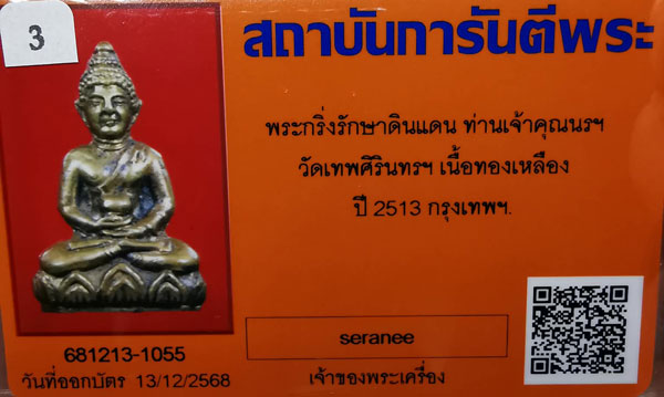 พระกริ่งรักษาดินแดน ท่านเจ้าคุณนรฯ วัดเทพศิรินทร์ฯ เนื้อทองเหลือง กริ่งดัง ปี2513 ตอกโค๊ตดาบไขว้ กรุงเทพฯ + บัตรG-pra สภาพเดิมค่ะ |