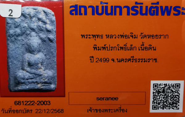 พระพุทธ หลวงพ่อเจิม วัดหอยราก พิมพ์ปรกโพธิ์เล็ก เนื้อดิน ปี2499 จ.นครศรีธรรมราช + บัตรG-pra สภาพเดิมค่ะ |