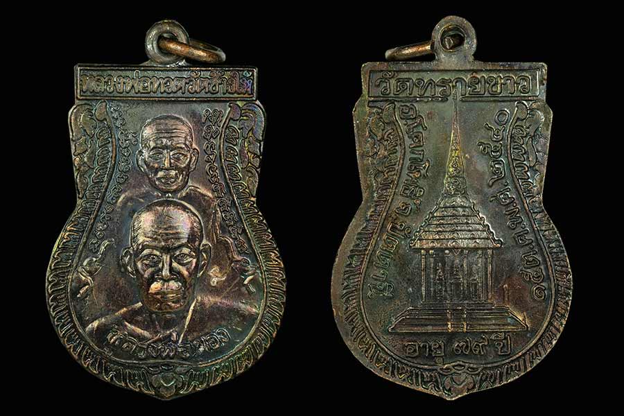 เหรียญเสมาขี่คอสร้างมณฑป ปี 2540 อ.นอง วัดทรายขาว เนื้ออัลปาก้าและเนื้อทองแดงรมดำ รวมรับพระ 2เหรียญ สภาพสวยครับ