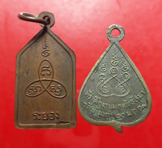 เหรียญหลวงพ่อแพว+หลวงพ่อเอม ระยอง เนื้อทองแดง+กะไหล่เงิน เคาะเดียวแดง