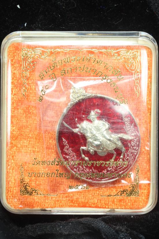 พิมพ์เล็กกะไหล่เงินลงยาแดง เหรียญสมเด็จพระเจ้าตากสินมหาราช 250 ปีสถาปนากรุงธนบุรี วัดหงส์รัตนารามราชวรวิหาร ปี 2561 ตรวจ/แก้ไขแบบ โดย อาจารย์เฉลิมชัย โฆษิตพิพัฒน์ เหรียญสวยน่าเก็บ//3380 |