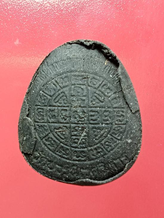 พระปิดตายันต์ดวงเล็ก หรือยันต์ดวงสุกิตติมา เนื้อผงใบลานดำ (ผงใบลานปลดหนี้) สอดตะกรุดเงิน ผสมพระเกศาสมเด็จพระญาณสังวร(เจริญ สุวัฑฒโน ปธ.๙) พิธีพุทธาภิเษก ณ พระอุโบสถคณะรังสี วัดบวรนิเวศวิหาร ๒ ตุลาคม ๒๕๒๓ หลวงปู่โต๊ะ วัดประดู่ฉิมพลี ร่วมปลุกเสก สมเด็จพระญาณสังวรฯทรงจุดเทียนชัยและประธานอธิษฐานจิต พร้อมด้วยพระคณาจารย์แห่งยุคอีกหลายรูป ไม่มีกล่อง เคาะเดียว รอยยับที่ งค์พระเกิดจากพระเกศาที่ผสมเด้งหลุดออกไปเพราะพระเป็นเนื้อผงน้ำมัน