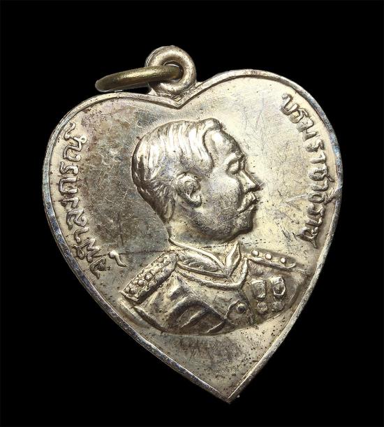 เหรียญหัวใจเสด็จพ่อ ร.5 หลวงพ่อโอภาสี ปี2495 เนื้ออัลปาก้า อาศรมบางมด จ.กรุงเทพ |