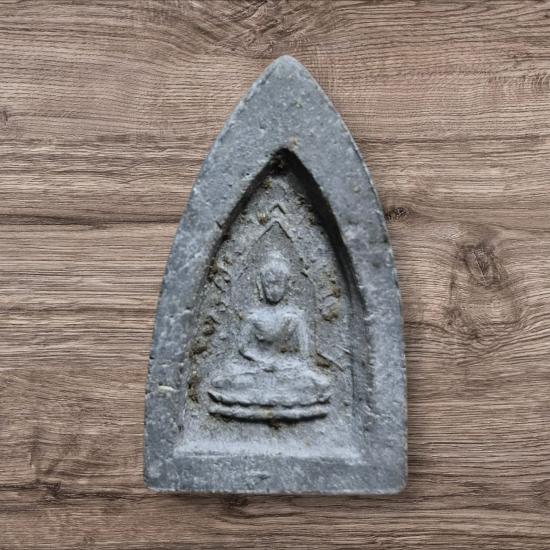 พระอรหังอังคีรส หลังเรียบ หลวงปู่เฮี้ยง วัดป่า ปี 2495 (ผสมผงหลวงพ่อแก้ว วัดเครือวัลย์) |