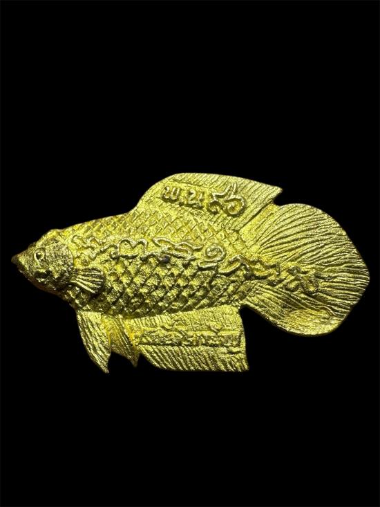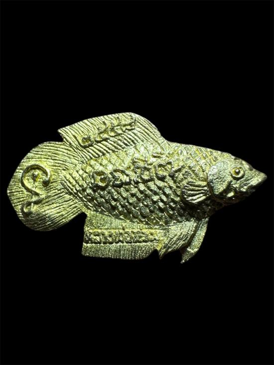 ในระยะแรกนั้น หลวงพ่อทำปลากัดโดยใช้ไม้โลดทะนง และไม้กาหลง มาแกะเป็นรูปปลากัด ลงจารอักขระกำกับ ก่อนจะปลุกเสก แจกแก่ชาวบ้านที่มาร่วมทำบุญ ผู้ที่ได้ไปต่างมีประสบการณ์ทางเมตตาค้าขาย แคล้วคลาดและคงกระพันเป็นที่เลื่องลือ มีคนมาขอเป็นจำนวนมากจนแกะไม่ทัน ต่อมาก็แกะด้วยไม้พญางิ้วดำ งาช้าง แต่ก็แกะไม่ทันความต้องการของชาวบ้าน จึงต้องให้หล่อด้วยโลหะจนถึงปัจจุบัน ปลากัดของหลวงพ่อน่วมได้รับความนิยมแพร่หลายมาก หล่อหลายครั้งหลายหนก็หมดลงในเวลาอันรวดเร็ว ปลากัดของหลวงพ่อน่วมเป็นวัตถุมงคลอันขึ้นชื่อลือชาและมีเอกลักษณ์เป็นหนึ่ง เดียวในโลก ผู้ที่เลื่อมใสที่เอาไปบูชาขอลาภผลในการประกอบกิจการค้าต่างประสบผลดีโดย ทั่ว |