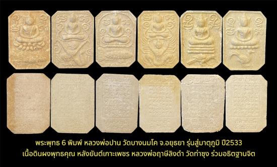 พระพุทธ 6 พิมพ์ หลวงพ่อปาน วัดบางนมโค จ.อยุธยา รุ่นสู่มาตุภูมิ ปี2533 เนื้อดินอุดผงพุทธคุณ หลังยันต์เกาะเพชร หลวงพ่อฤาษีลิงดำ วัดท่าซุง ร่วมอธิตฐานจิต