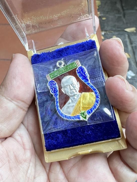 เหรียญเสมาหน้าแซยิดหูเชื่อมโบราณ หลวงพ่ออิฎฐ์ วัดจุฬามณี จ.ส มุทรสงคราม พ.ศ.2565 เนื้อเงินลงยา ตอกโค๊ต ตอกเลข ๖๗๘๐ กล่องเดิม