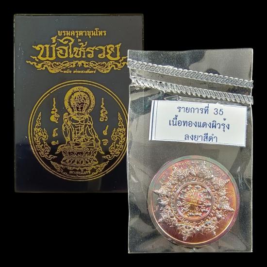 เหรียญบรมครูตาขุนโหร หลักเมือง ๖๘ รุ่น "พ่อให้รวย" นครศรีธรรมราช จัดสร้างโดย หมึก ท่าพระจันทร์ เนื้อทองแดงผิวรุ้งลงยาดำ หมายเลข ๗๔ (เลขสองหลัก) พร้อมกล่องเดิม ปลุกเสก ๔ วาระ พิธีใหญ่แห่งปี เกจิดังทั่ว
