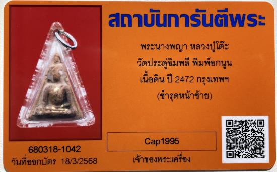 **1700**พระนางพญาเนื้อดิน หลวงปู่โต๊ะ วัดประดู่ฉิมพลี พิมพ์อกนูน ปี 2472 พร้อมบัตร G-PRA