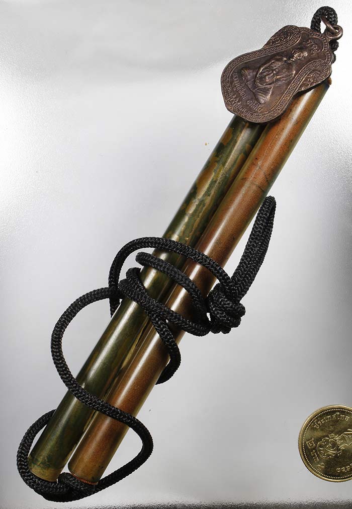 ตะกรุดคู่หุ้มจีวร 5 นิ้ว หลวงปู่เจียม วัดอินทราสุการาม จ.สุรินทร์ + เหรียญเสมา ปี42 พระดีมีประสบการณ์ |