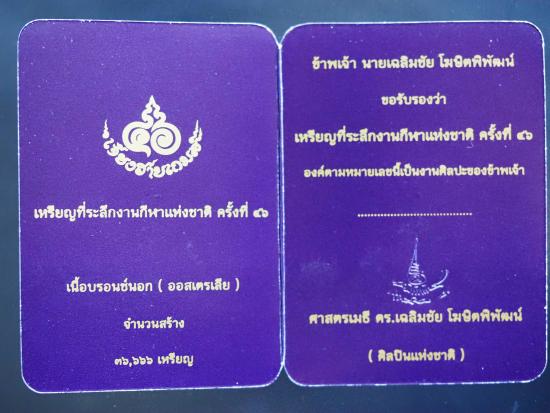 ร้อยเดียวเคาะแรก เหรียญที่ระลึกงานกีฬาแห่งชาติ ครั้งที่ ๔๖ หรือ เจียงฮายเกมส์ เนื้อบรอนซ์นอก (ออสเตรเลีย) ตอกโค๊ด เลเซอร์เลข สวยเดิมกล่องเดิม อุปกรณ์ครบๆ