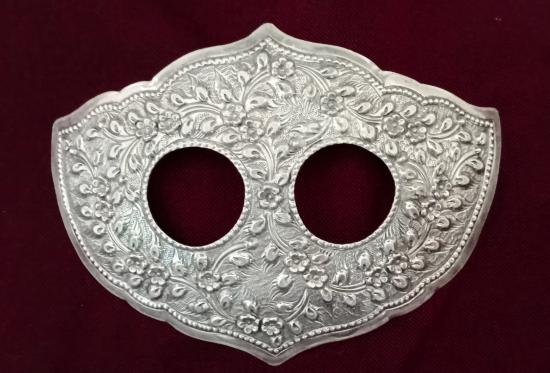 หัวรัดผ้าซิ่นเงินแท้ ลายช่อดอกไม้เถาเครือวัลย์ ขนาดประมาณ 4.5 X 3 นิ้ว น้ำหนักประมาณ 35.37 กรัม หรือ ประมาณ 2 บาท 1 สลึง 1 เฟื้อง ตอกลายละเอียดสวยมาก งานแข็งแรงทนทานและงดงามครับ ส่งฟรีทั่วไทย รับประกันตามกฎครับ |
