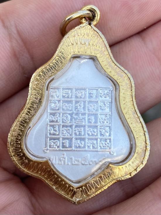 เหรียญหลังยันต์ กระไหล่เงิน ยิงทรายเลี่ยมทองไมครอนเดิมๆจากวัด ปี 2539 (กรรมการ) หลวงพ่อกวย วัดโฆสิตาราม ชัยนาท