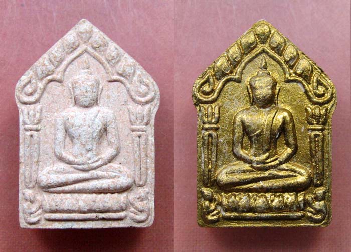 พระขุนแผนผงพรายกุมาร ที่ระลึกพิธีฉลองกุฎิ เนื้อชมพู ปี ๒๕๕๓ ไม่ทาทอง หมายเลข ๑๒๓๙๓ และทาทอง หมายเลข ๕๓๗๗ พร้อมกล่องเดิมๆ