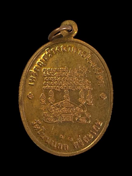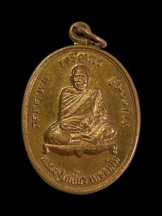 เหรียญรูปไข่นั่งเต็มองค์ รุ่นเจริญพรบน เนื้อทองแดง หลวงปู่เกลี้ยง วัดโนนแกด |