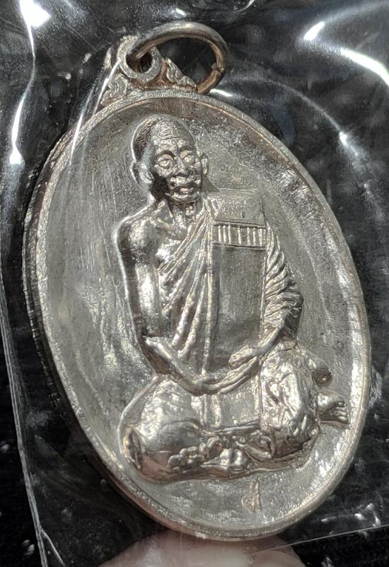 เหรียญคุ้มภัยให้รวย เนื้อเงิน หลวงปู่แผ้ว ปวโร ปี 2551 |