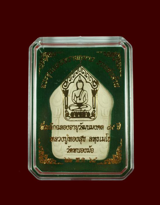 พร้อมกล่องเดิมจากวัด ( ขนาดความสูง 4.5 กว้าง 3.2 ซม. ) |