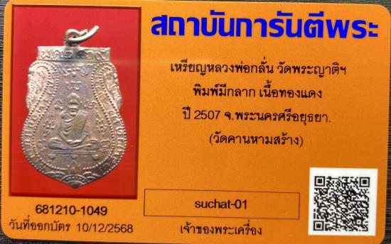 เหรียญหลวงพ่อกลั่น วัดพระญาติฯ เนื้อทองแดง ปี 2507 จ.พระนครศีอยุธยา วัดคานหามสร้าง |