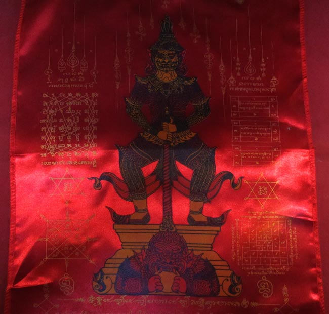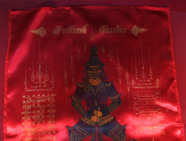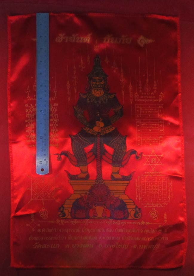 ผ้ายันต์ ท้าวเวสสุวรรณ วัดสะแก ต.บางเลน อ.บางใหญ่ จ.นนทบุรี ครับ