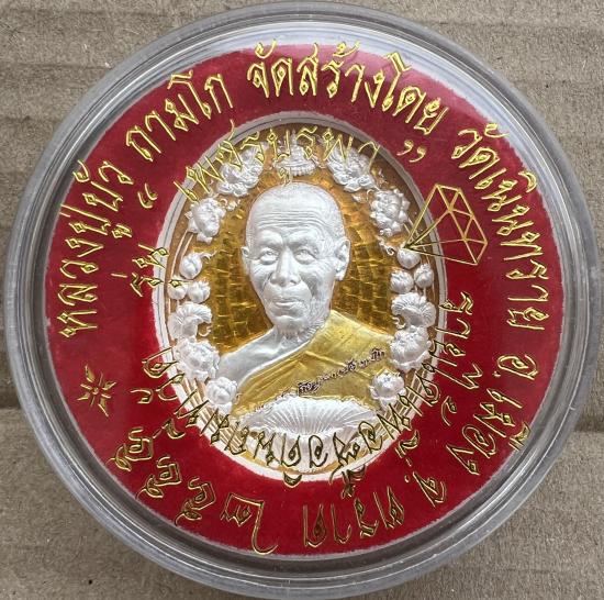 เหรียญเพชรบูรพา ปี55 เนื้อเงินลงยาสีเหลือง หมายเลข256 กล่องเดิม เสกถึง2วาระและเสกเต็ม1ไตรมาส จัดสร้างน้อยเพียง2,555เหรียญเท่าปีสร้าง ราคาจอง3,000บาท