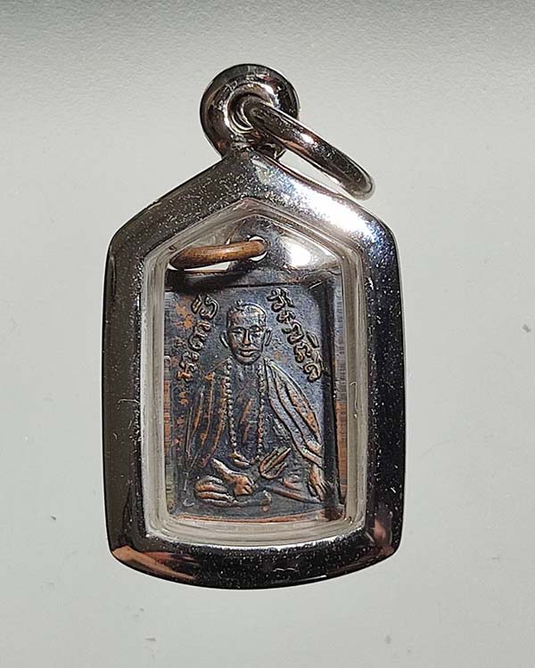 เหรียญรุ่นแรก หลวงพ่อผินะ วัดสนมลาว(วัดไทยงาม) ต.โคกแย้ อ.หนองแค จ.สระบุรี เนื้อทองแดง เดิมๆ เลี่ยมกรอบเงินฝังพลอย ปี 2498