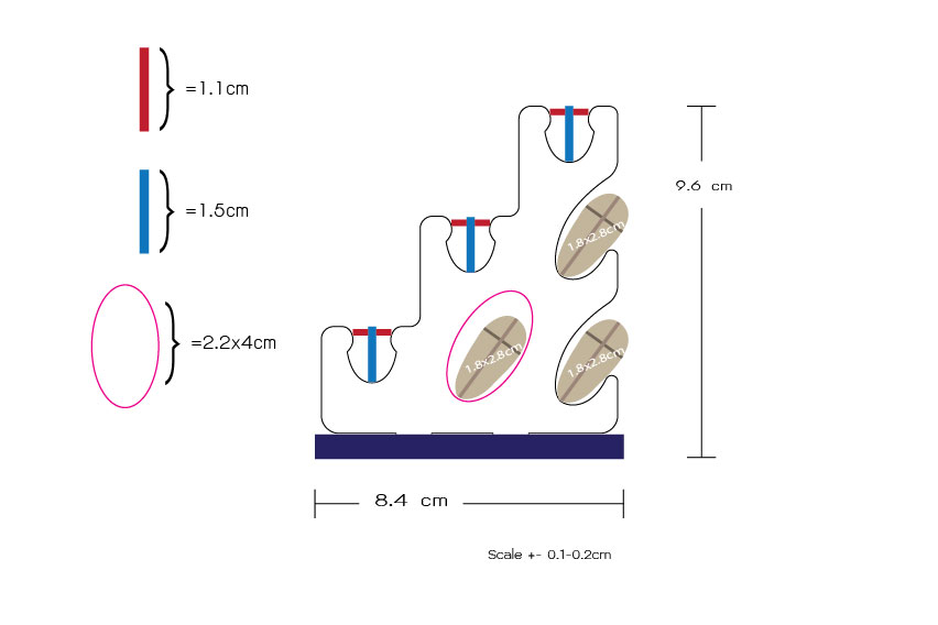 ตัวแท่นสามารถโชว์มีดได้ 3 ตำแหน่ง ที่พักฝักมีดอีก 3 ตำแหน่ง
