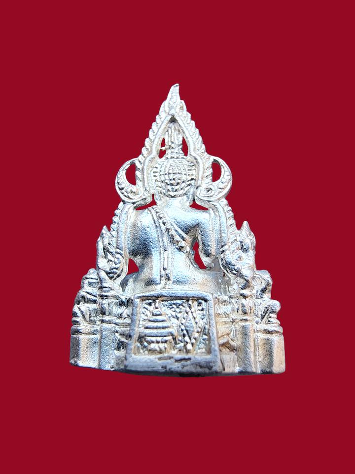 พระรูปหล่อพระพุทธชินราชเนื้อเงินประมาณปี 2533 ถึง 2536 ใต้ฐานตอกโค๊ตเนื้อเงินเปอร์เซ็นต์สูงสวยเดิมรับประกันตามกฎน้ำหนัก 2.5 กรัม |