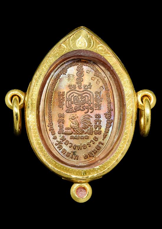 รายละเอียด เหรียญรวยทันใจ หลวงพ่อรวย วัดตะโก เนื้อทองแดง ผิวรุ้ง ปี2558 เลี่ยทอง3ห่วง แท้ทัน สวย