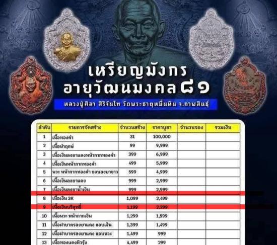 วัดใจ เลขสวยๆ หลวงปู่มหาศิลา สิริจันโท(หลวงปู่ศิลา) อายุวัฒนะมงคล81 เหรียญมังกร "เนื้อเงินสามกษัตริย์" รับประกันพระแท้ตามกฎเวป *กดดูที่ฆ้อนมีหลายรายการ"สามกษัตริย์ " "เนื้อสามกษัตริย์" คือ |