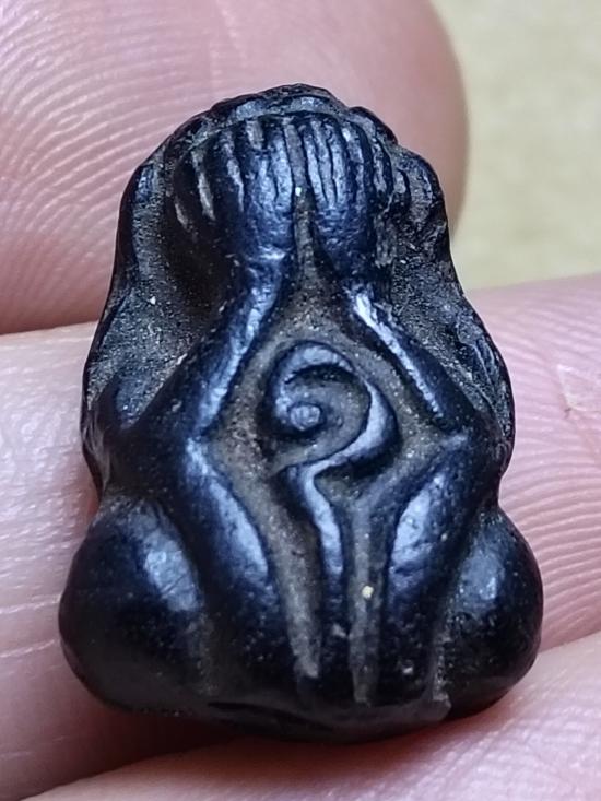 พระปิดตา หลวงพ่อทา วัดพะเนียงแตก จังหวัดนครปฐม หลังยันต์ใบพัด ท้องยันต์อุ เนื้อดินผสมผงใบลาน พิมพ์เกลอเดี่ยว เศียรเงาะ |