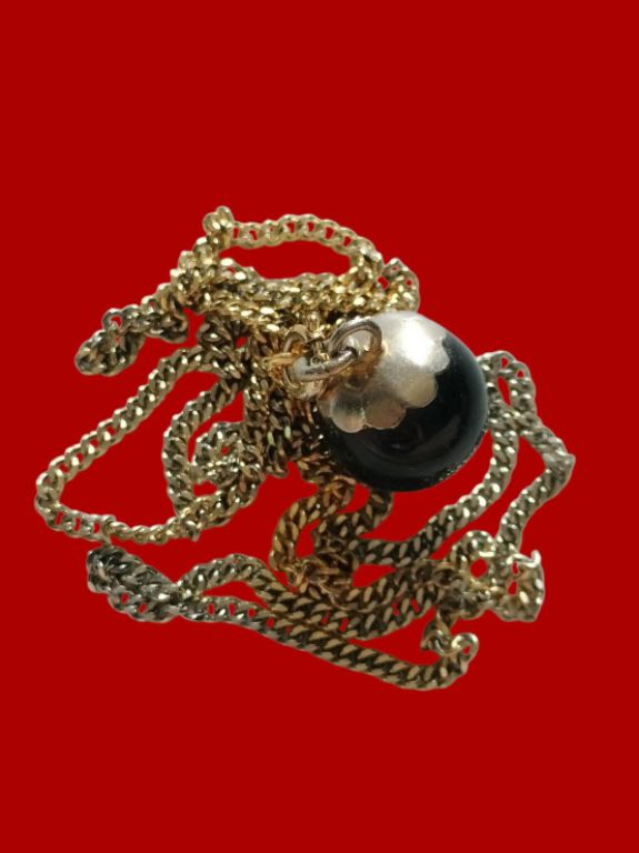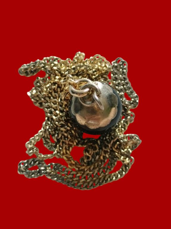 แก้วมณีรัตน จุกมังคุด สีดำ พร้อมสร้อยเดิม (แก้วสารพัดนึก) { รายการหายาก } หลวงพ่อฤาษีลิงดำ วัดท่าซุง จ. อุทัยธานี ((( สภาพผ่านการใช้ )))